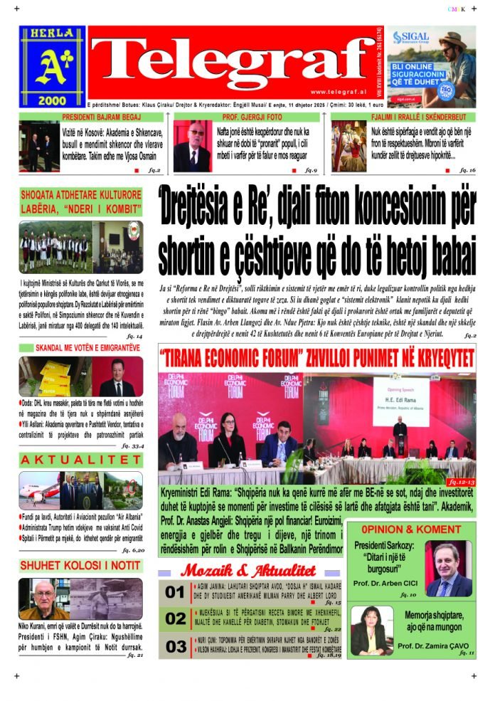Post navigation SHTYPI I DITËS, e mërkurë 10 Dhjetor, 2025… SHTYPI I DITËS, e premte 12 Dhjetor, 2025…