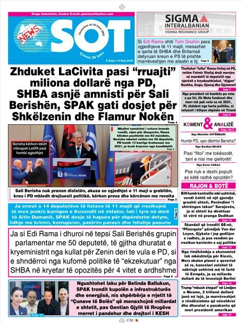 SHTYPI I DITËS – E ejnte, 15 MAJ 2025