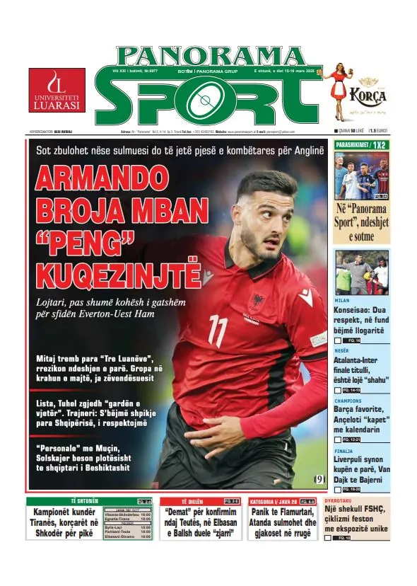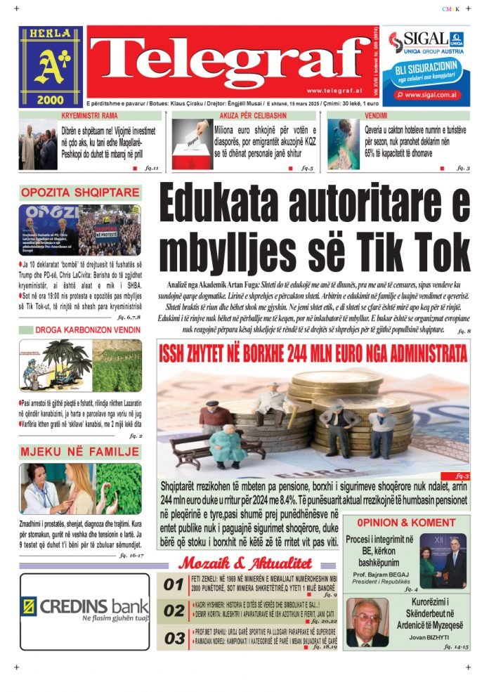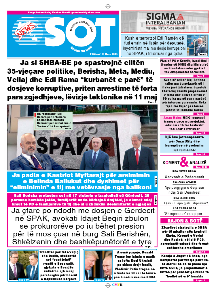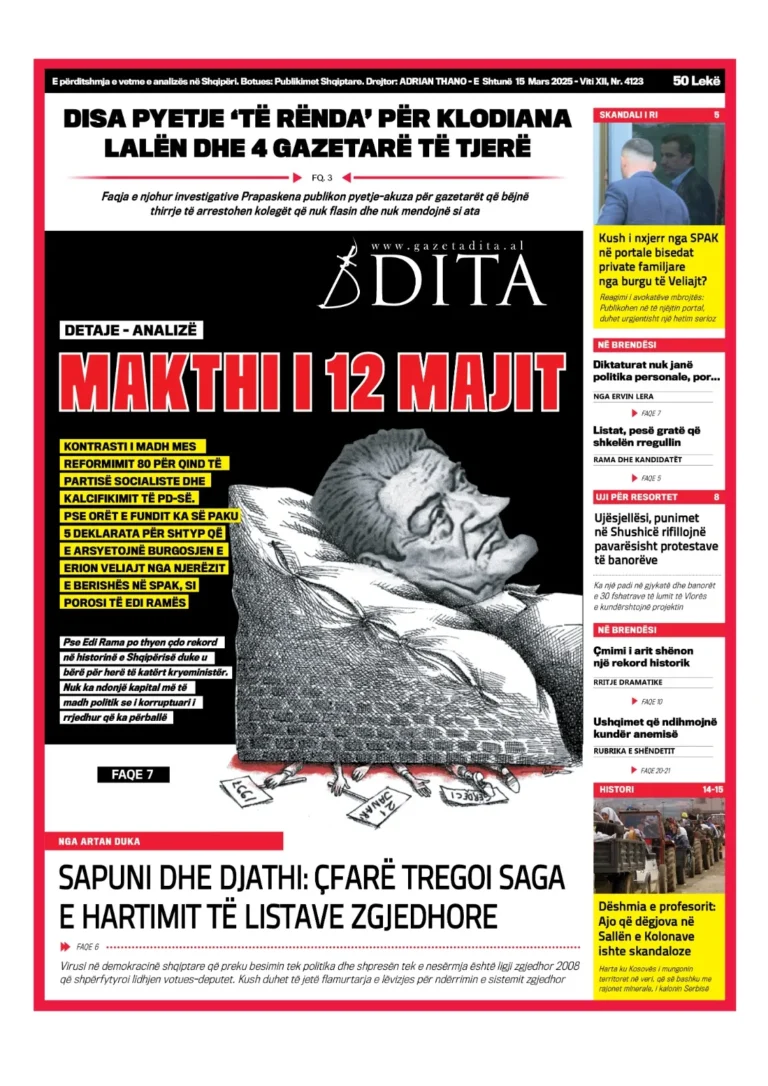 GAZETA PANORAMA PANORAMA SPORT GAZETA DITA GAZETA EPOKA E RE GAZETA TELEGRAF GAZETA SOT Post navigation SHTYPI I DITËS – E premte, 14 mars 2025 SHTYPI I DITËS – E hënë, 17 mars 2025